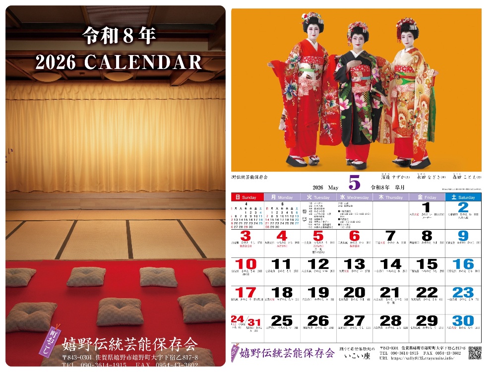 嬉野伝統芸能保存会のオリジナル2026年カレンダー販売中です。